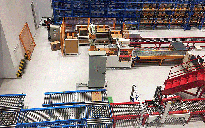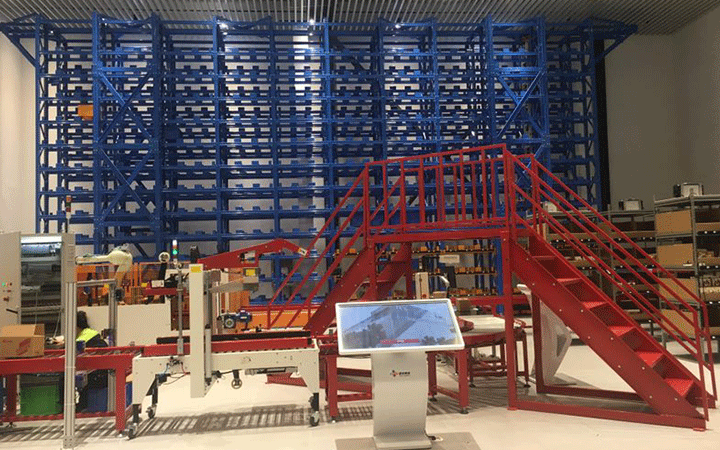 智能立體倉庫貨架通常是組合式鋼結(jié)構(gòu)的建筑物或結(jié)構(gòu)體,貨架內(nèi)是標(biāo)準(zhǔn)尺寸的貨位空間,巷道堆垛起重機是整個自動化立體倉庫的核心設(shè)備,通過手動操作,半自動操作或全自動操作,穿行于巷道之間的巷道中,出入庫口利用各種輸送機或AGV/RGV等自行運動小車對接巷道堆垛機,實現(xiàn)把貨物從一處搬運到另一處,完成存、取貨的工作。