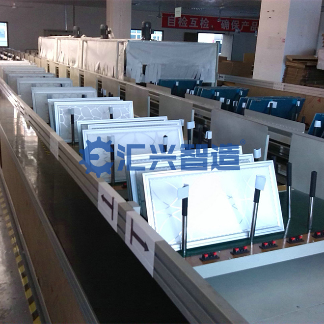 傳統(tǒng)的側(cè)面發(fā)光的LED面板燈只需將LED燈條用雙面膠固定于燈盤(pán)側(cè)面,現(xiàn)在越來(lái)越多企業(yè)選擇底部發(fā)光或者說(shuō)正面發(fā)光的設(shè)計(jì),而這種設(shè)計(jì)需要將LED燈條通過(guò)膠水將其粘接固定于燈盤(pán)底部,有些工廠貼4條,6條,8條,或者更多,取決于每個(gè)公司產(chǎn)品的設(shè)計(jì),無(wú)論何種設(shè)計(jì),都涉及到打膠貼燈條的工序,這一工序如果通過(guò)人工來(lái)實(shí)現(xiàn),會(huì)出現(xiàn)打膠不均勻,速度慢,無(wú)法達(dá)到批量化生產(chǎn)的要求,耗費(fèi)較高人力成本的同時(shí),打膠粘接質(zhì)量也無(wú)法滿足產(chǎn)品質(zhì)量要求,所以引入自動(dòng)點(diǎn)膠機(jī)勢(shì)在必行。匯興智造根據(jù)市場(chǎng)需求,研發(fā)設(shè)計(jì)了此款LED面板燈多頭自動(dòng)點(diǎn)膠機(jī)。