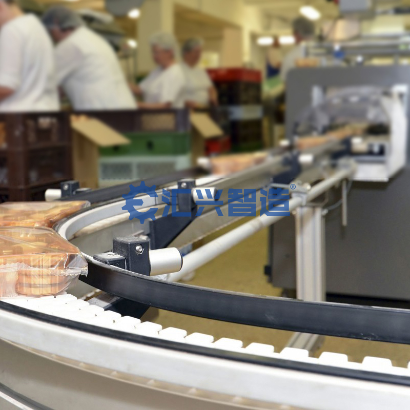 組成:頂板鏈輸送機(jī)以標(biāo)準(zhǔn)頂板鏈為承載面,由馬達(dá)減速機(jī)為動力傳動,運(yùn)行在專用導(dǎo)軌中,根據(jù)工藝流程不同,頂板鏈分為轉(zhuǎn)彎及直線型。