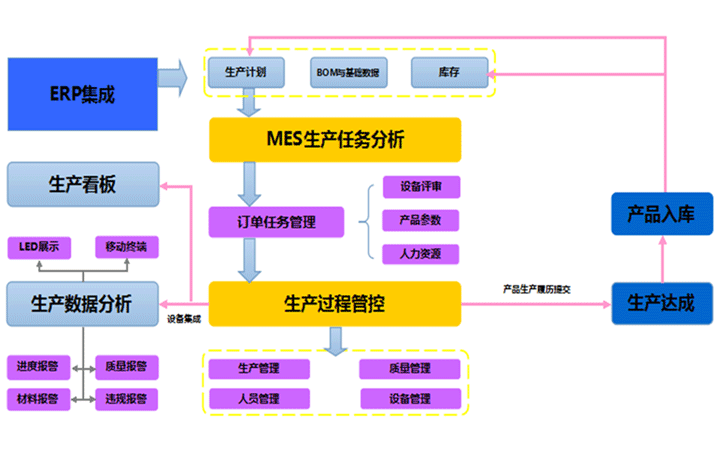 建立集成的生產(chǎn)制造執(zhí)行系統(tǒng)(MES),覆蓋對(duì)人、機(jī)、料、法、環(huán)、地理、產(chǎn)品等生產(chǎn)要素的管理,數(shù)據(jù)采集方面帶來(lái)質(zhì)的飛躍。