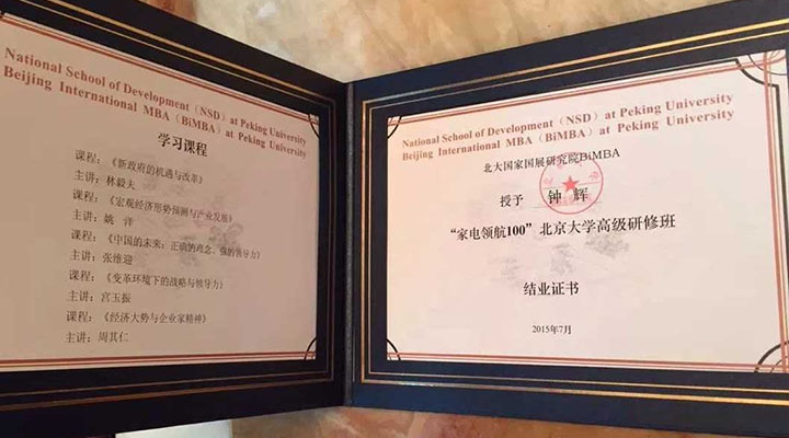 同時,經(jīng)過一年的學習和相處,“家電領(lǐng)航100”北大班的同學們迎來了結(jié)業(yè)的日子。匯利興集團董事長鐘輝為此次畢業(yè)學員,中國慧聰家電城董事總經(jīng)理宋冰晨先生為“家電領(lǐng)航100”北大班的同學們頒發(fā)結(jié)業(yè)證書。