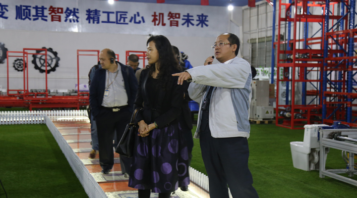 匯興智造董事長鐘輝陪同來訪領(lǐng)導(dǎo)參觀智能裝備體驗(yàn)館