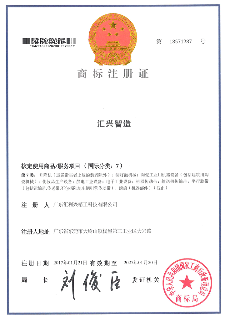 匯興智造:又獲得一項發(fā)明專利、一項商標注冊
