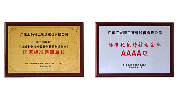 2017830日,經(jīng)廣東省質(zhì)量技術(shù)監(jiān)督局、省標(biāo)準(zhǔn)化協(xié)會專家組的現(xiàn)場評審,廣東匯興精工智造股份有限公司(股票代碼:839258)再度獲評為“AAAA級標(biāo)準(zhǔn)化良好行為企業(yè)及《機械安全 安全設(shè)計與精益制造指南》國家標(biāo)準(zhǔn)起草單位,在行業(yè)中到示范引領(lǐng)作用。
