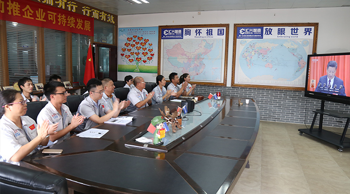 10月18日,中國共產(chǎn)黨第十九次全國代表大會(huì)在北京隆重開幕,廣東匯興精工智造股份有限公司(股票代碼:839258)黨支部積極組織黨員收聽收看大會(huì)開幕盛況,匯興黨員同志們?yōu)槭糯蟠_定的奮斗目標(biāo)、描繪的宏偉藍(lán)圖歡欣鼓舞,紛紛表示要以十九大精神為指引,積極投身科學(xué)發(fā)展的偉大實(shí)踐,為建設(shè)現(xiàn)代工業(yè)4.0做出貢獻(xiàn)。