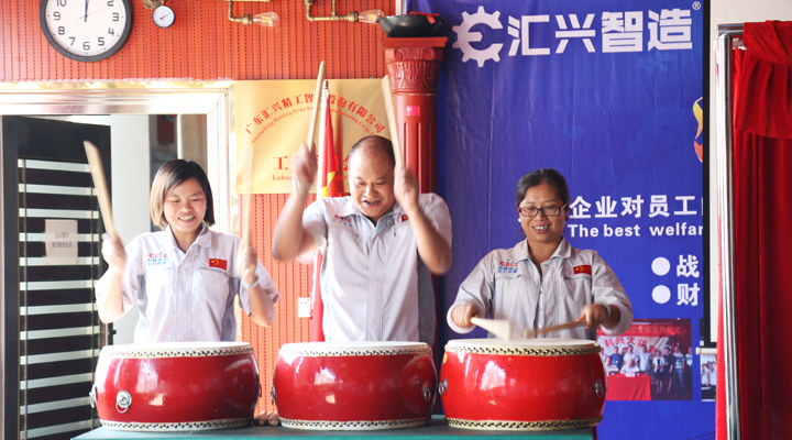 東莞市大嶺山鎮(zhèn)工商行政管理局袁洪副局長,張昕栓股長,匯興智造董事長鐘輝,上市辦辛主任,監(jiān)事長呂常垣,財務(wù)總監(jiān)呂漪,行政總監(jiān)黃艷,營銷總監(jiān)楊思等一同舉行簡單而隆重的揭牌儀式。鐘董事長對袁局長的到來表示熱烈歡迎,并且深情感謝大嶺山鎮(zhèn)這片樂土,匯興智造能取得一系列的資質(zhì)和榮譽,離不開政府各級部門認(rèn)可與肯定,離不開大嶺山這片土壤很好的營商環(huán)境。袁局長在儀式上總結(jié)發(fā)言,“匯興智造是一個非常有朝氣的企業(yè),用士氣鼓來鼓舞士氣,確實令人耳目一新與眾不同,能做到企業(yè)文化和企業(yè)發(fā)展融合在一起,這真的很少見,很有才氣,很有情懷,而且再獲“守重”資質(zhì),更說明公司是一家誠信經(jīng)營非常有前景的好企業(yè)?!睆V東省守合同重信用企業(yè)”榮譽稱號是對企業(yè)資質(zhì)規(guī)模一種肯定,其實更是金字招牌,我們也希望工商部門與企業(yè)有更多的互動。