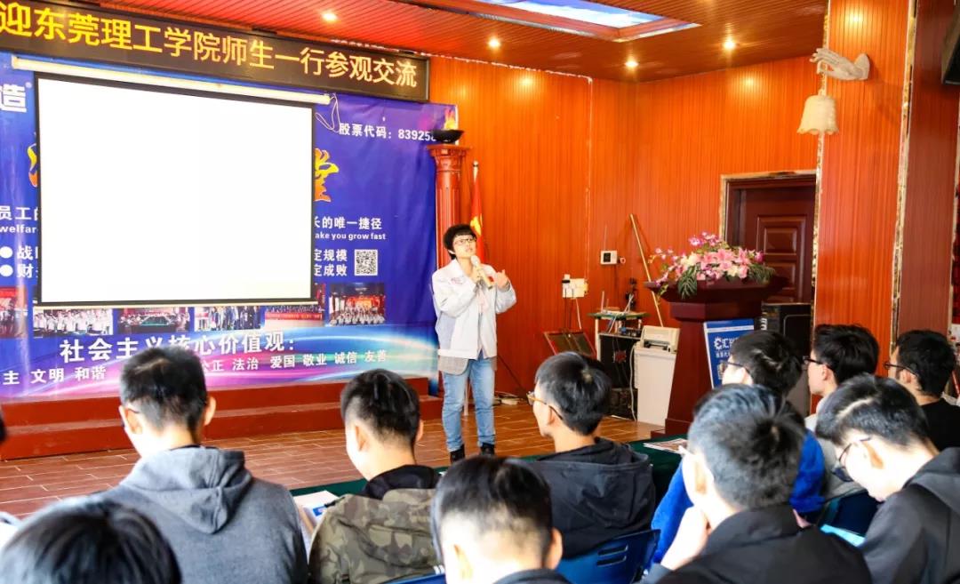 隨后,蔣明華在公司大會(huì)議室向師生們?cè)敿?xì)介紹了公司的發(fā)展歷程、產(chǎn)品特點(diǎn)、核心優(yōu)勢(shì)、企業(yè)文化、人力資源、員工晉升通道等方面的概況,并熱忱歡迎東莞理工學(xué)院學(xué)子來公司參觀,更歡迎畢業(yè)的大學(xué)生來公司就業(yè)。