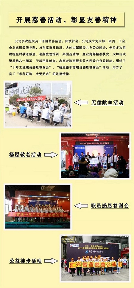 如果信念有顏色,那一定是中國紅!無償獻血是無私奉獻、救死扶傷的崇高行為,是我國血液事業(yè)發(fā)展的強大助力和保障。匯興智造作為東莞市首批10家“友善企業(yè)”之一,始終在堅持以人為本,注重人文關(guān)懷的同時,致力于將“友善”的價值觀、理念融入公司日?;顒又校ㄟ^快樂工作,幸福生活的獨具特色的“友善文化”和“一個行業(yè) 一個家庭 一所學(xué)校 一支軍隊”的人文理念,把社會主義核心價值觀融入到員工思想教育工作之中;夯實“友善企業(yè)”基礎(chǔ)、打造“友善環(huán)境”陣地、構(gòu)建友善勞動關(guān)系。在點點滴滴中融合、滲透,全方位落地生根,營造和諧友善氛圍和人文環(huán)境,積極提升員工的幸福感和自豪感,讓員工在公司平臺上充分展現(xiàn)自我,實現(xiàn)自身價值,創(chuàng)享更加美好的生活。