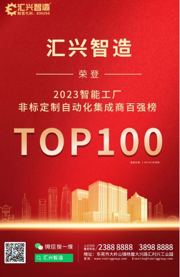 祝賀!匯興智造榮登《2023智能工廠非標(biāo)定制自動化集成商百強(qiáng)榜》